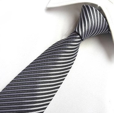 Platinum / Charcoal Stripe Silk Necktie Set